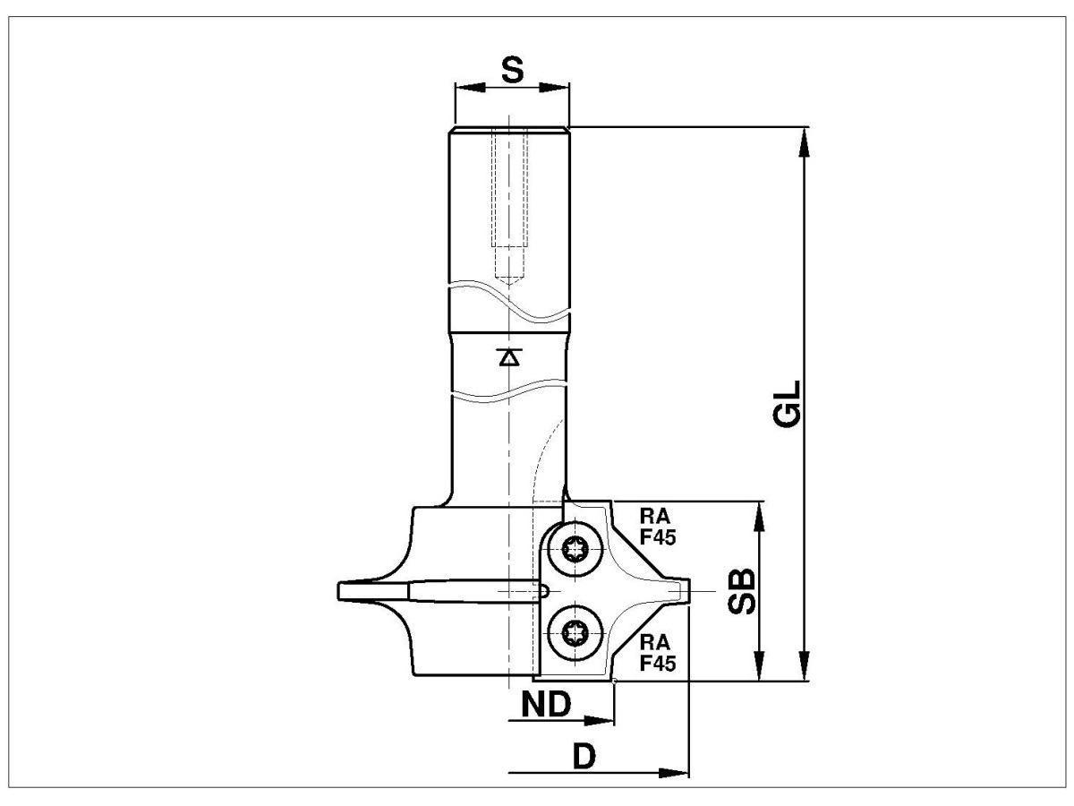 Anwendung: -Fräsen von Rundungen und Fasen an Werkstücken oben oder unten R2-R5-F45 (mit C258-16, C258-20) R6-R12-F45 (mit C258-61220)
