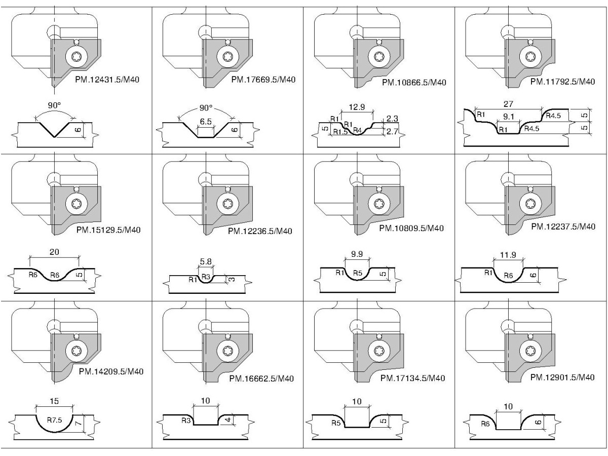 Lieferumfang: -Grundkörper inkl. Profilmesser PM.12431.5/M40 vormontiert Soll ein anderes Messer montiert werden, ist dies bei der Bestellung anzugeben (mögliche Profilmesser siehe C235-1)