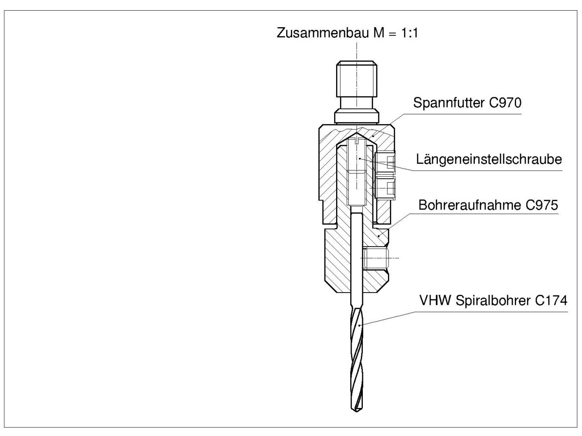 Ausführung: -Einteiliges Spannfutter mit zwei Spannschrauben für Werkzeugwechsel