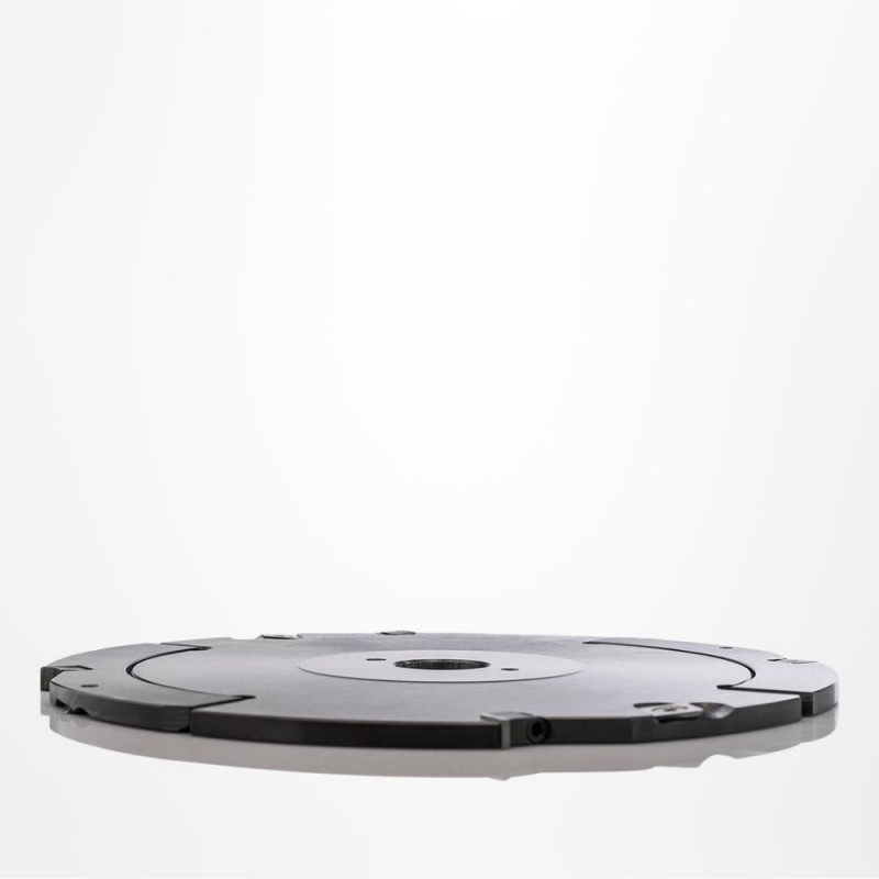 - Verstellbar durch Zwischenringe (inklusive) Fräser aus Stahl mit HW Wendeplatten und Vorschneider.