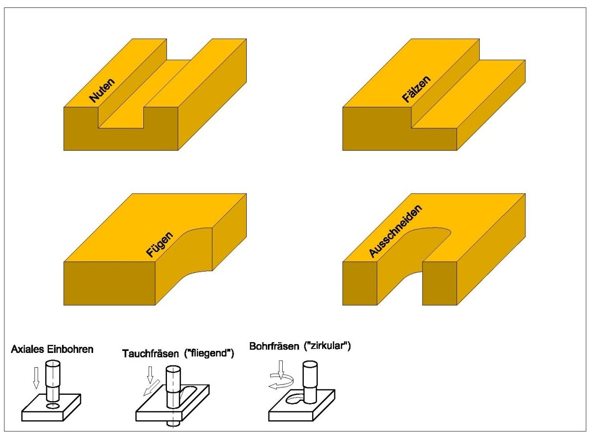 Anwendung: -Nuten, Fügen, Falzen, Formatieren (Trennfräsen)